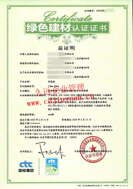 中國(guó)環(huán)境標(biāo)志產(chǎn)品認(rèn)證證書(十環(huán)認(rèn)證)